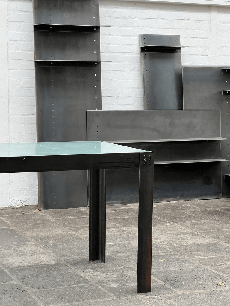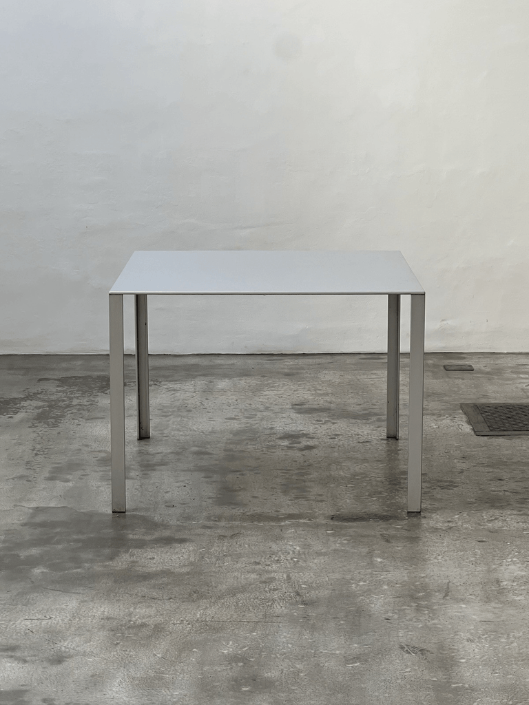 Original minimalist table by Jean Nouvel Made of lacquered metal, clean lines, sharp edges. Pure architectural elegance.