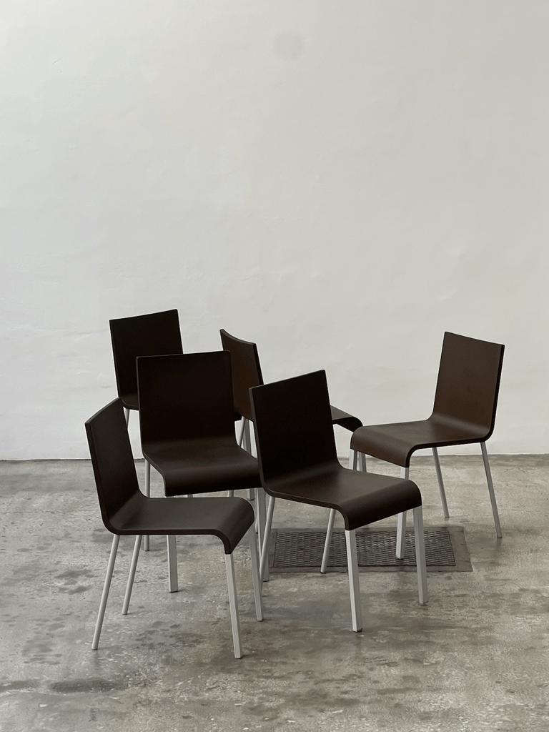 A rare brown set of "03" chairs by Maarten van Severen, produced by Vitra.