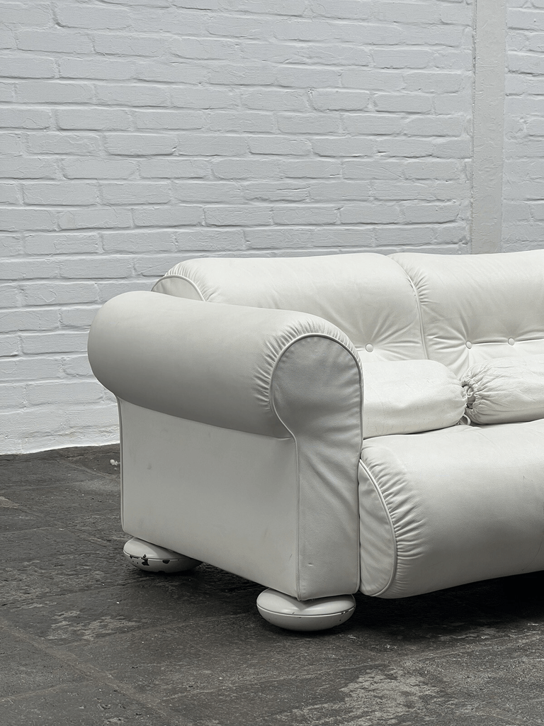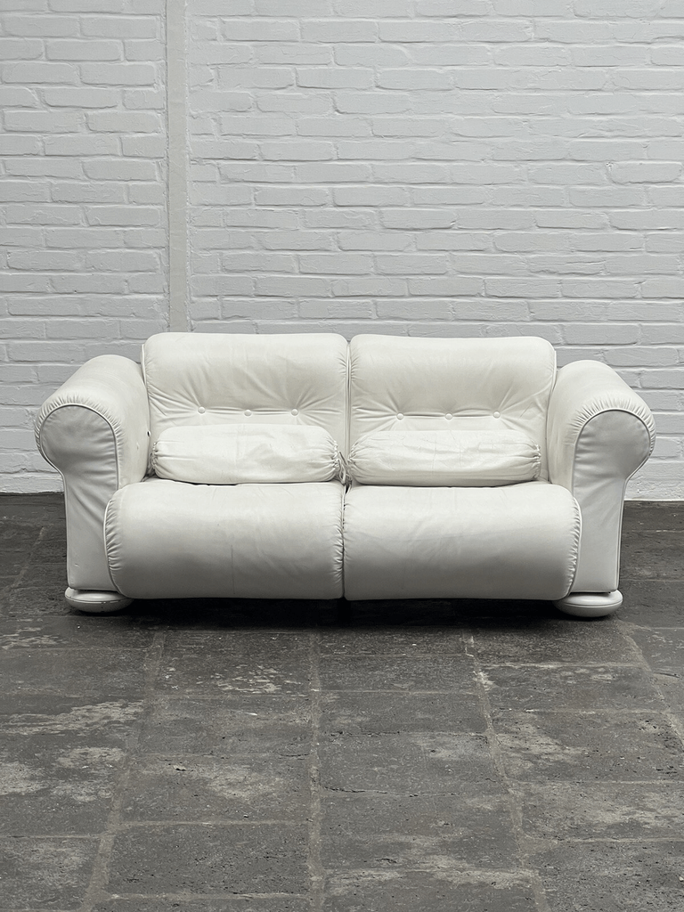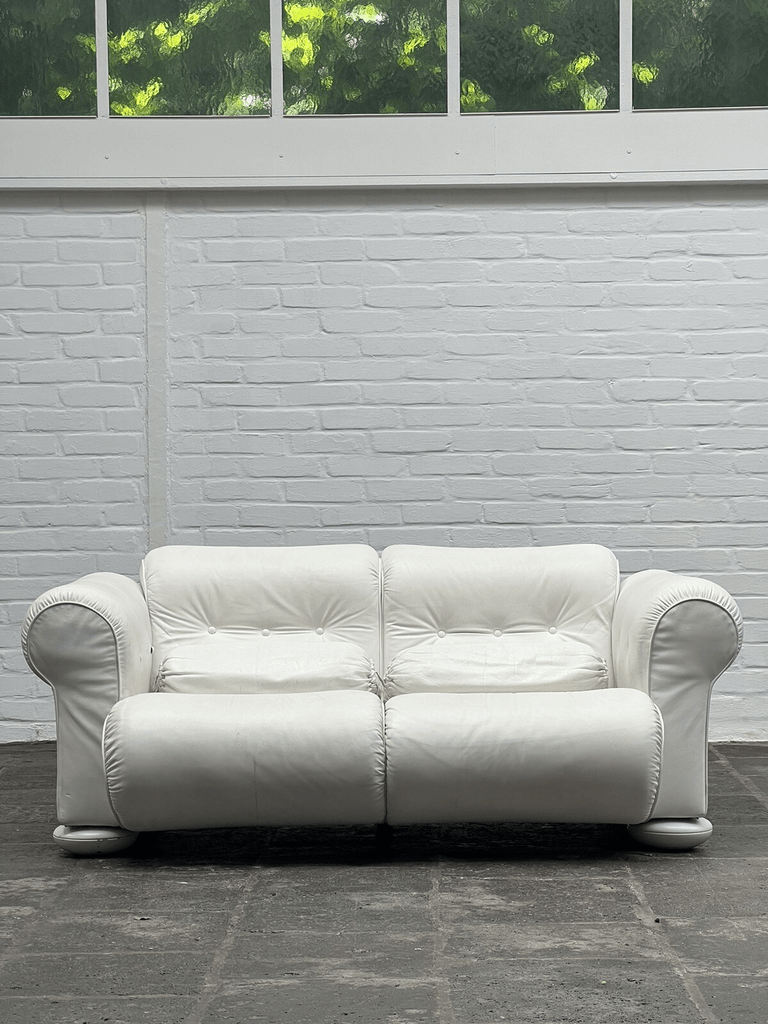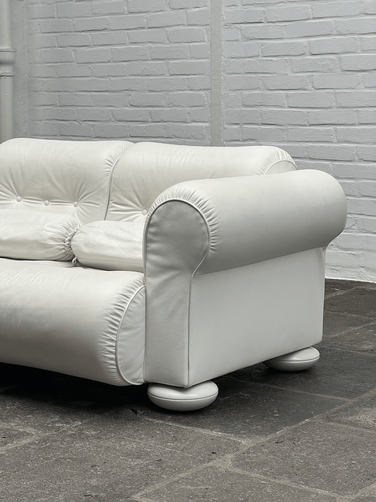 Comodus two seater sofa in white leather, 1967 designed, produced by Otto Zapf in Germany.