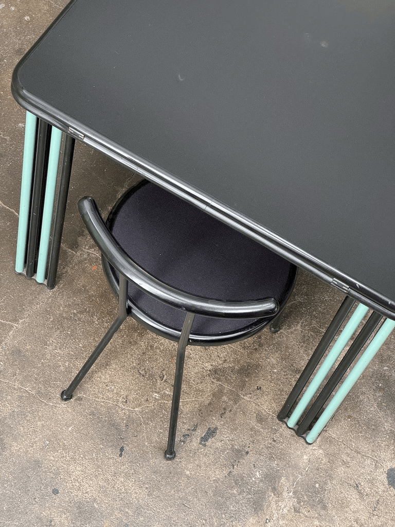 Rare postmodern folding table. The folding mechanism works perfectly.