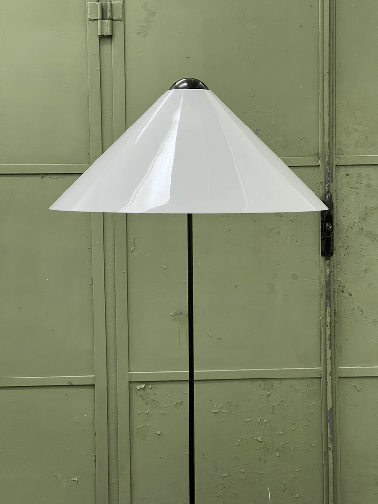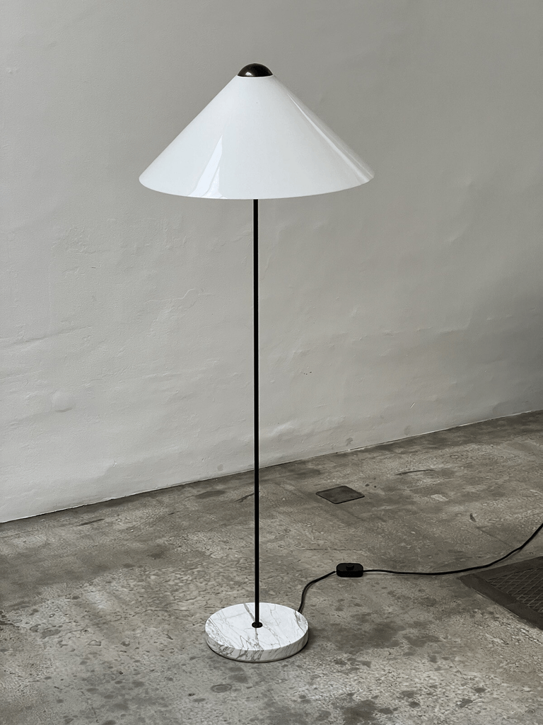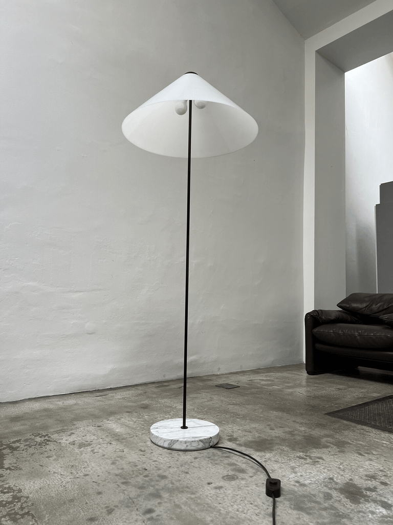 Iconic Snow Floor Lamp by Vico Magistretti for Oluce, Italy, 1973. A stunning example of minimalist design, this lamp features a white acrylic shade that gently diffuses light, creating a soft and inviting ambiance.